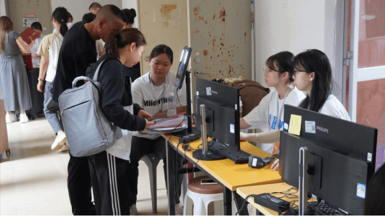 秋意浓浓,细雨绵绵,随着一位位新生陆续到达,辅导员老师们带领迎新志愿者在东学楼热情迎接2024级新面孔。身份证与人脸核验、核对录取通知书信息、迎新系统完成报到操作、协助办理宿舍入住,一切工作井然有序、有条不紊。