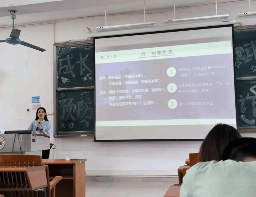 为增强同学们的安全意识和警惕性,远离诈骗圈套,营造美好的大学生活,6月12日,金年会jinnianhuicom在3教401室开展“大学生防诈骗指南”成长赋能课,林思婷老师担任主讲,2023级全体学生共同参与学习。