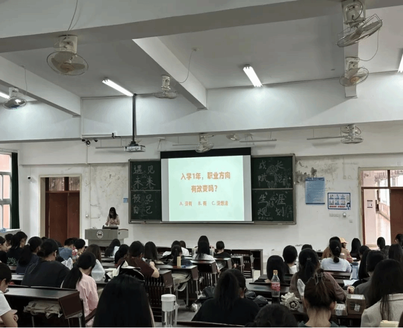 正式开讲之前,李文睿老师通过问卷调查的方式进行互动,由“就读护理学专业的原因”“入学之后职业方向是否改变”引入主题:在大学中,应该尽早的对我们的职业生涯进行规划,并且付诸行动。