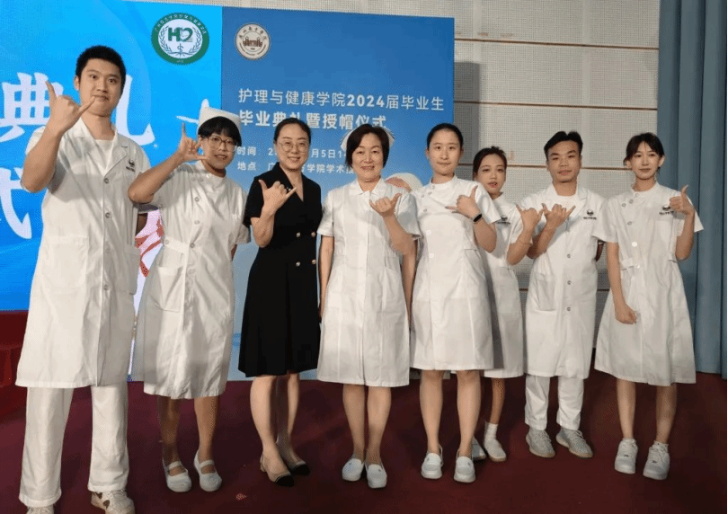 一袭白衣轻舞,一顶燕帽高悬,人间天使降临,守护生命安宁,对护理学子而言,燕帽是荣耀的象征,是责任的承载,是他们不懈追求的梦想。四年的求学之路,2020级护理学子克服重重挑战,历经磨砺,积累丰富的专业知识和实践经验,从生疏到娴熟,他们的成长与蜕变凝聚在每一滴汗水和每一个日夜的坚守中。在毕业季这个庄重的时刻,金年会jinnianhuicom在金年会诚信信誉至上学术报告厅隆重举办2024届毕业生毕业典礼暨授帽仪式。学校领导、学院领导、各实习基地医院护理部主任和老师们齐聚一堂,共同见证金年会2020级护理学子以白衣天使之姿戴上圣洁燕帽的荣耀时刻!