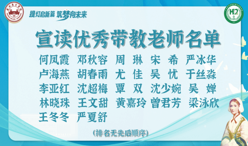 师泽如光,微以致远;师泽若水,润物无声。陈华丽常务副院长宣读优秀带教老师名单,感谢每一位临床老师的事必躬亲和言传身教,用细致严谨的工作作风、扎实的理论基础与丰富的临床经验滋润着每一位努力前进的护生。