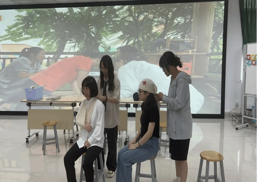 励能学堂的情景演绎环节令人印象深刻,学员们模拟各种急救场景,迅速评估伤情,专业地进行心肺复苏、止血包扎等操作,同时不忘安抚病患情绪。学员们以情景演绎的方式,模拟医护人员面对自然灾害时对不同伤者采取的急救方法。每一个细节展示了学员们学有所成,真正掌握了应急护理的基本技能,同时也看到了人文关怀的种子在每个学员心中扎根、开花、结果。