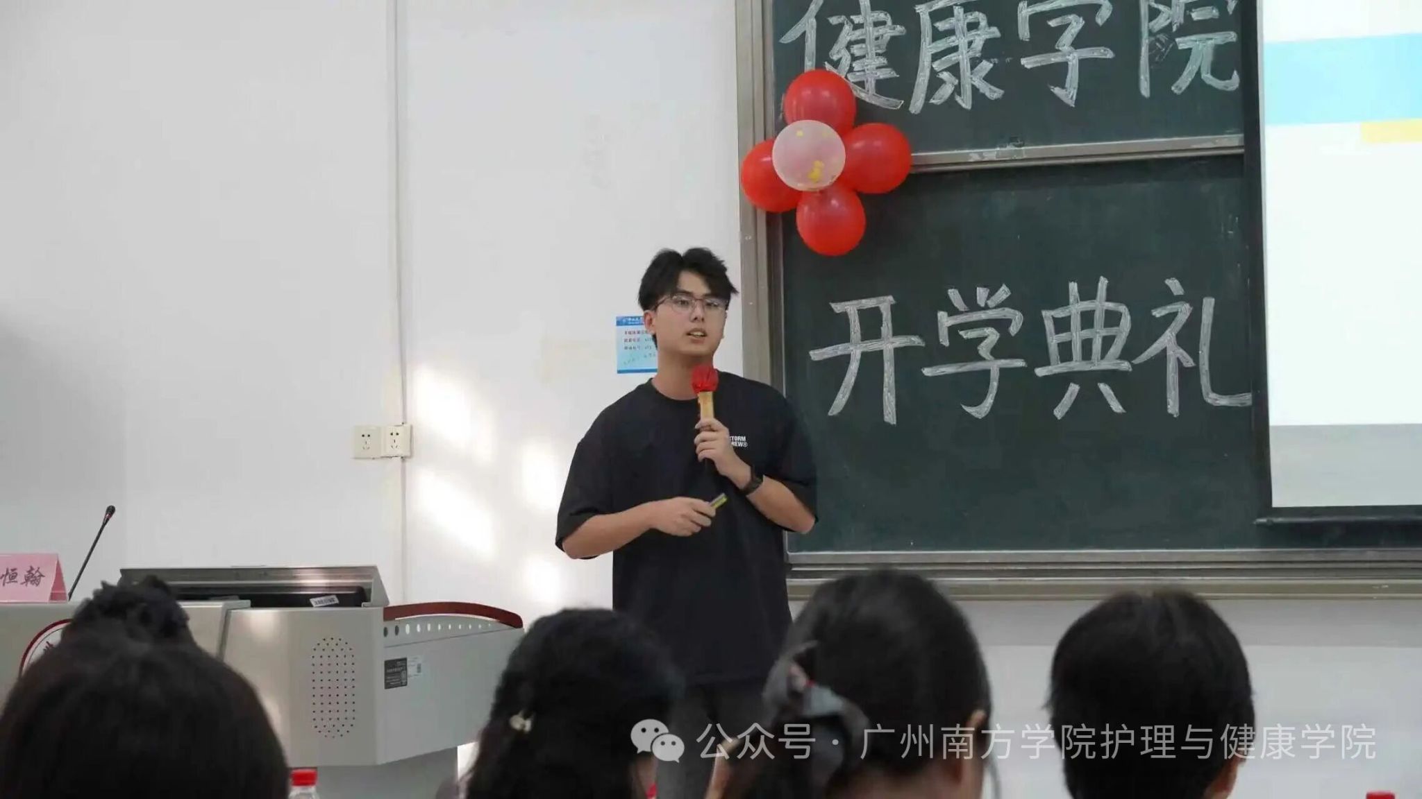 学生代表潘恒翰同学在《定志笃行,成“三有”护理人》主题分享中,结合参与“三下乡”社区服务的实践经历,向新生展示了护理学子的多元发展路径。通过老年健康检测、入户探访等生动案例,他具体展现了专业知识在社区服务中的实践应用。潘恒翰同学鼓励新生突破传统认知,积极参与社会实践与科研创新,在服务中提升专业价值,努力成长为有理想、有本领、有担当的新时代护理人才!