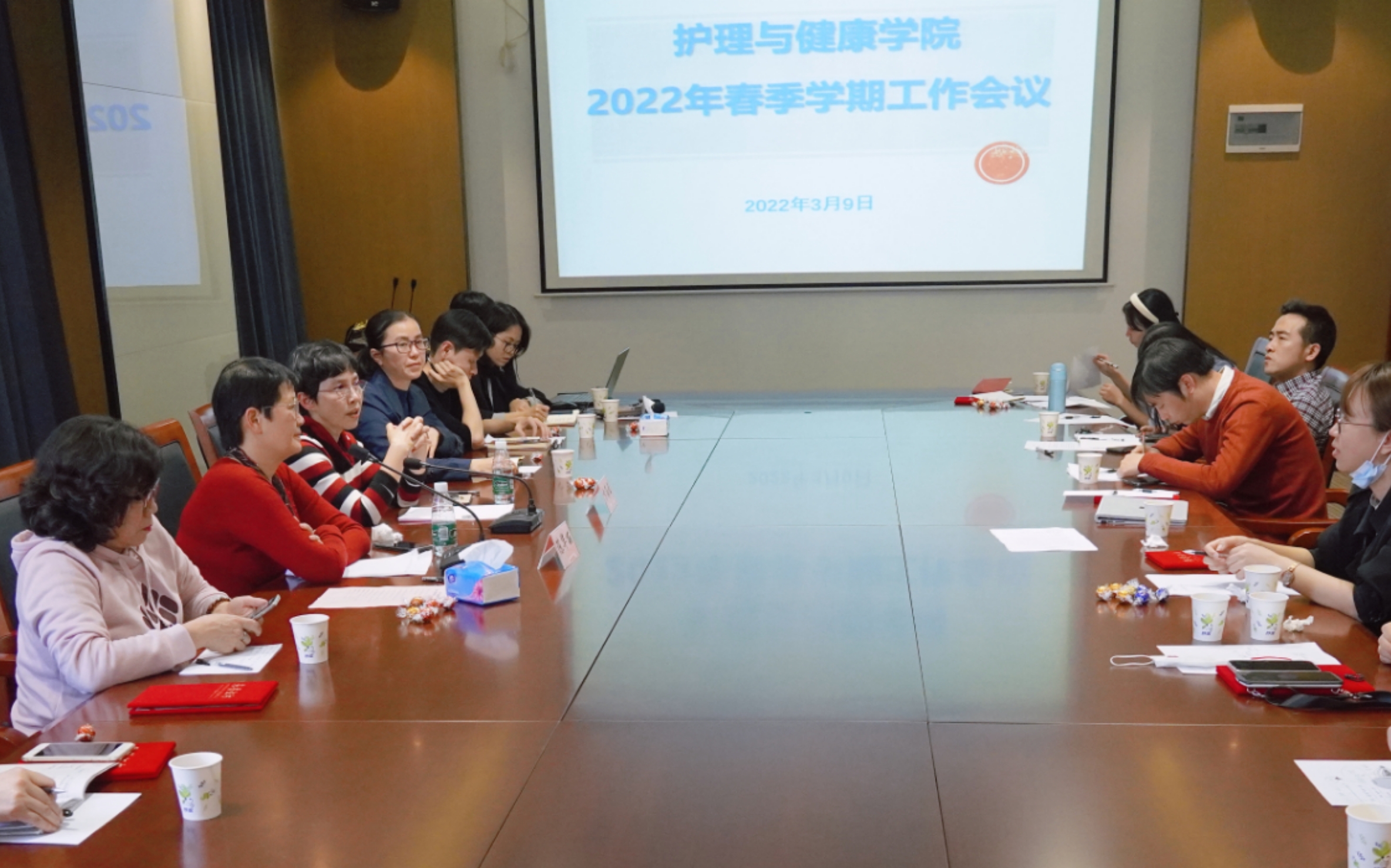 方海云院长围绕护理学专业建设、学科发展及学院未来发展方向进行了详细阐述,并从党建、行政、教学、科研、学生工作等多方面对2022年春季学期学院工作进行了整体部署。她带领全体教师共同学习《教育部教师工作司2022年工作要点》,要求全体教师在加强各方面工作建设的同时,要坚持以务实为根本,注重师德师风,以创新为动力,促进学生全面发展,推进教师队伍建设,凝心聚气,协同奋斗,促使学院各项事业建设发展再上新台阶。