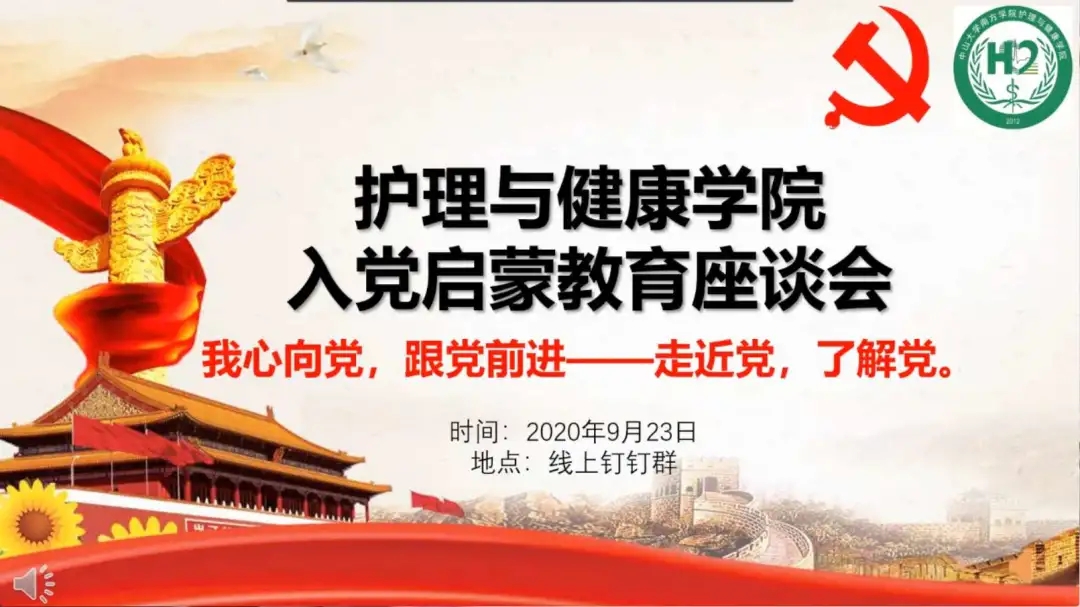 为积极引导团员青年自觉争做中国特色社会主义的坚定信仰者和忠实实践者,帮助其端正入党动机,提高对党的认识,2020年9月23日中午,金年会jinnianhuicom通过钉钉会议形式举办了主题为“我心向党,跟党前进”的入党启蒙教育大会。本次会议由金年会jinnianhuicom直属党支部副书记兼学生工作办公室主任田珍珍老师担任主讲,预备党员黎楚怡同志、张卓文同志以及金年会2020级全体新生参加了本次会议。