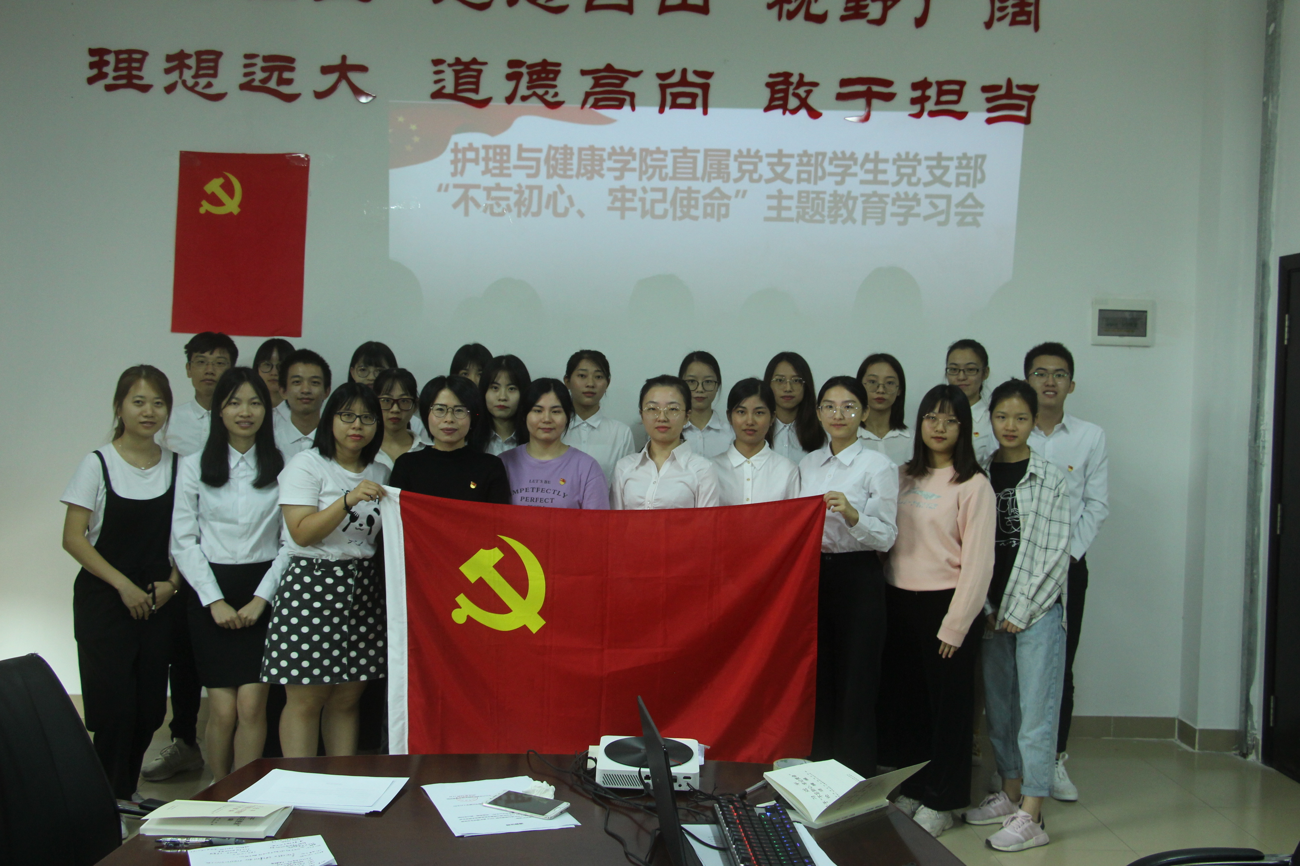 金年会jinnianhuicom直属党支部学生党支部于2019年10月26日上午在医务楼二楼206室开展金年会学生党支部“不忘初心、牢记使命”主题教育之党员学习会。出席本次大会的成员有金年会jinnianhuicom直属党支部副书记兼学生工作办公室主任范丽红同志,学生党支部所有学生党员、发展对象及部分入党积极分子。