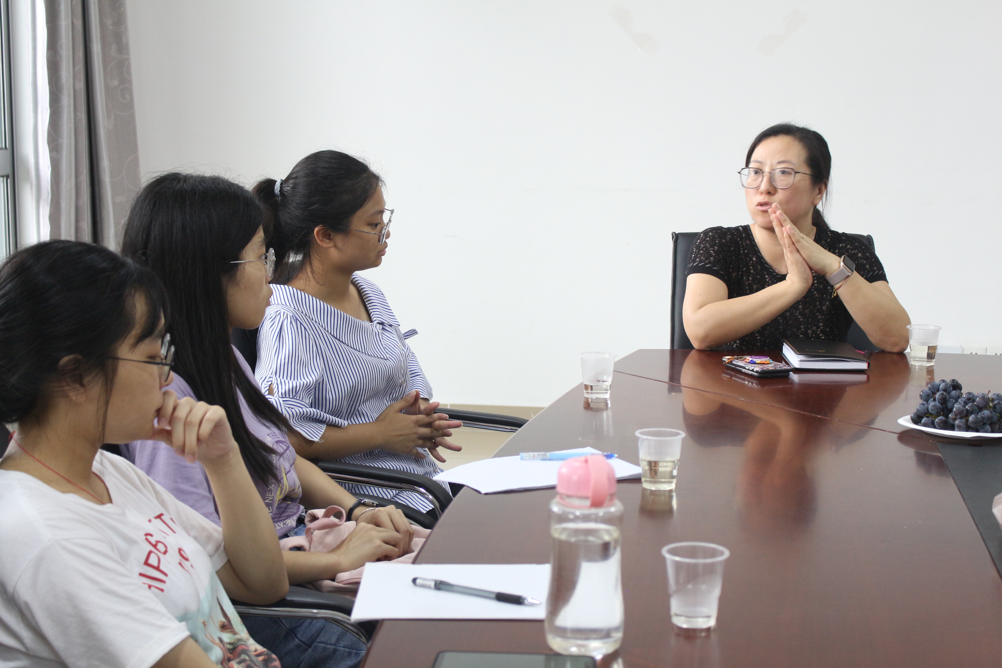 2019年6月13日下午,我系于医务楼会议室206开展了以"大学生理论知识学习与社团活动平衡"为主题的师生面对面活动。本次活动由韩婷老师作为主讲老师,办公室副主任罗烟桃老师为辅助老师,2018级的学生代表参与。