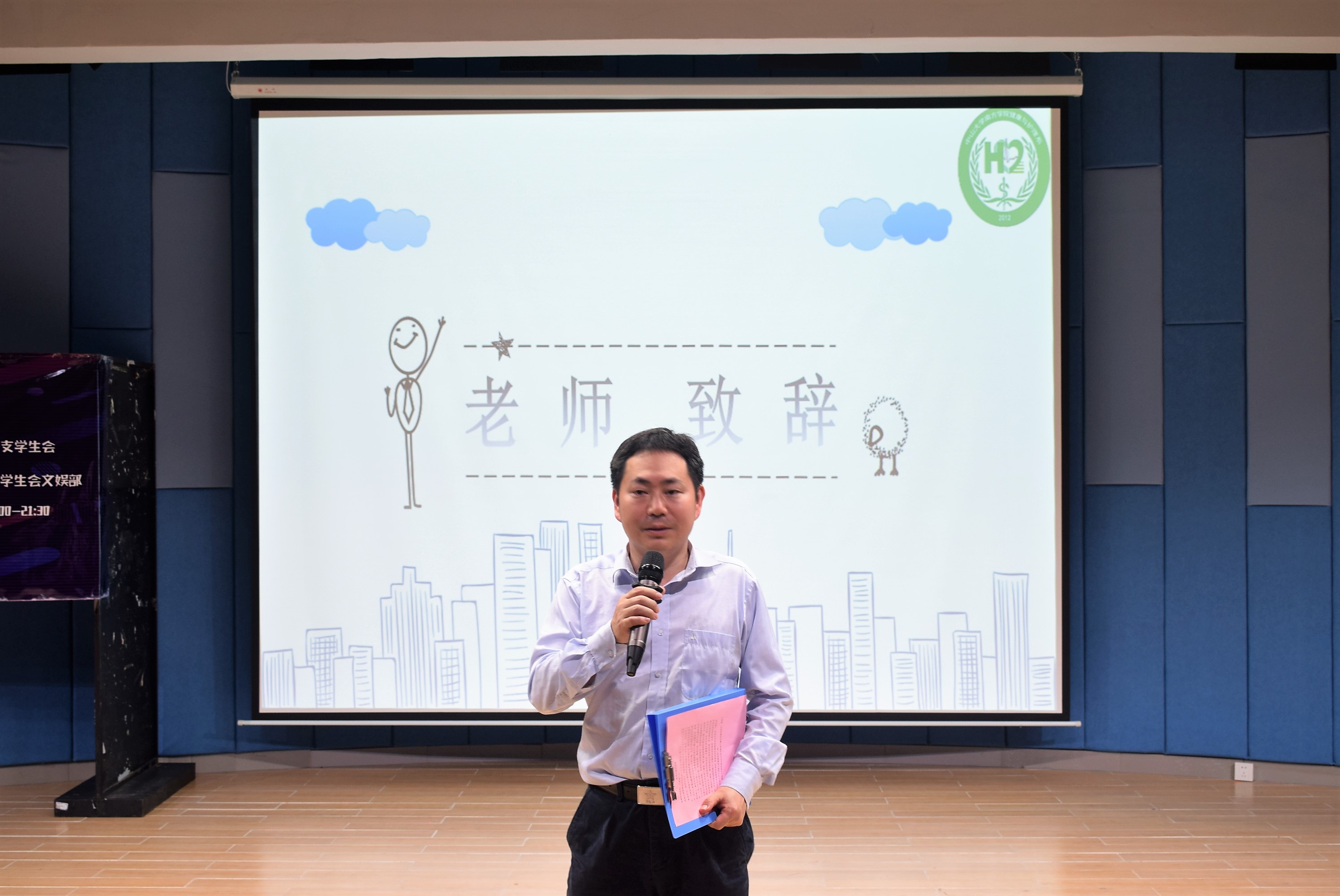 活动伊始,程爱民老师为本次活动致开幕辞。程老师提到配音是一种独具魅力的表演形式,是一种语言艺术。配音大赛为参赛选手提供了一个锻炼和表现自我的舞台,为观众带来了视觉与听觉的享受和珍贵的回忆。最后程老师祝愿本次活动取得圆满成功。