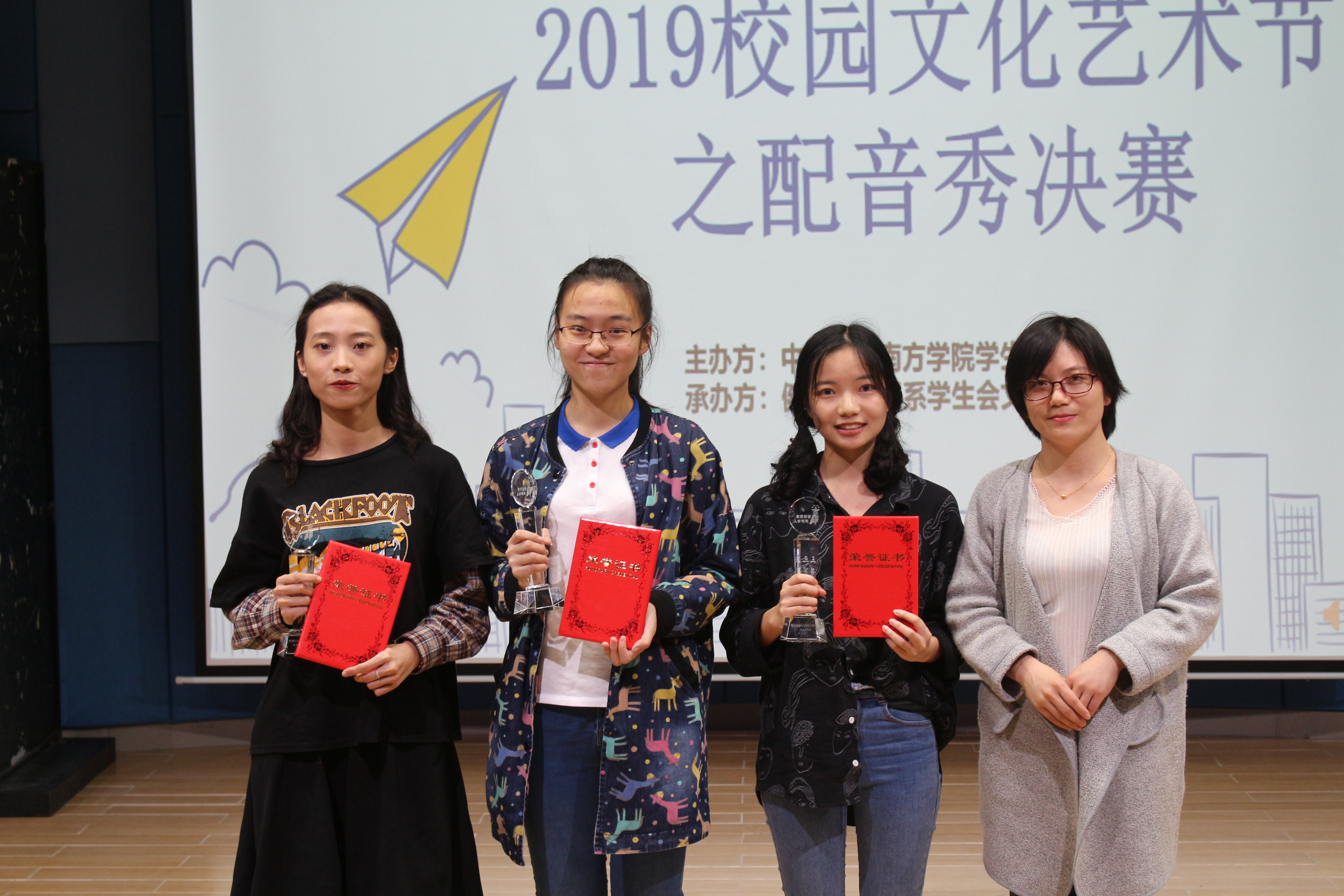 此次配音大赛为同学们搭建了一个展示自我风采的舞台,充分调动了同学们的创新性和积极性。同时也为评委和观众呈现了一场视觉与听觉的盛宴,实现了让同学们在轻松愉快的活动中学习、进步、成长的目的。至此, 校园文化节之“音你而来,声声夺人”配音大赛圆满落幕。