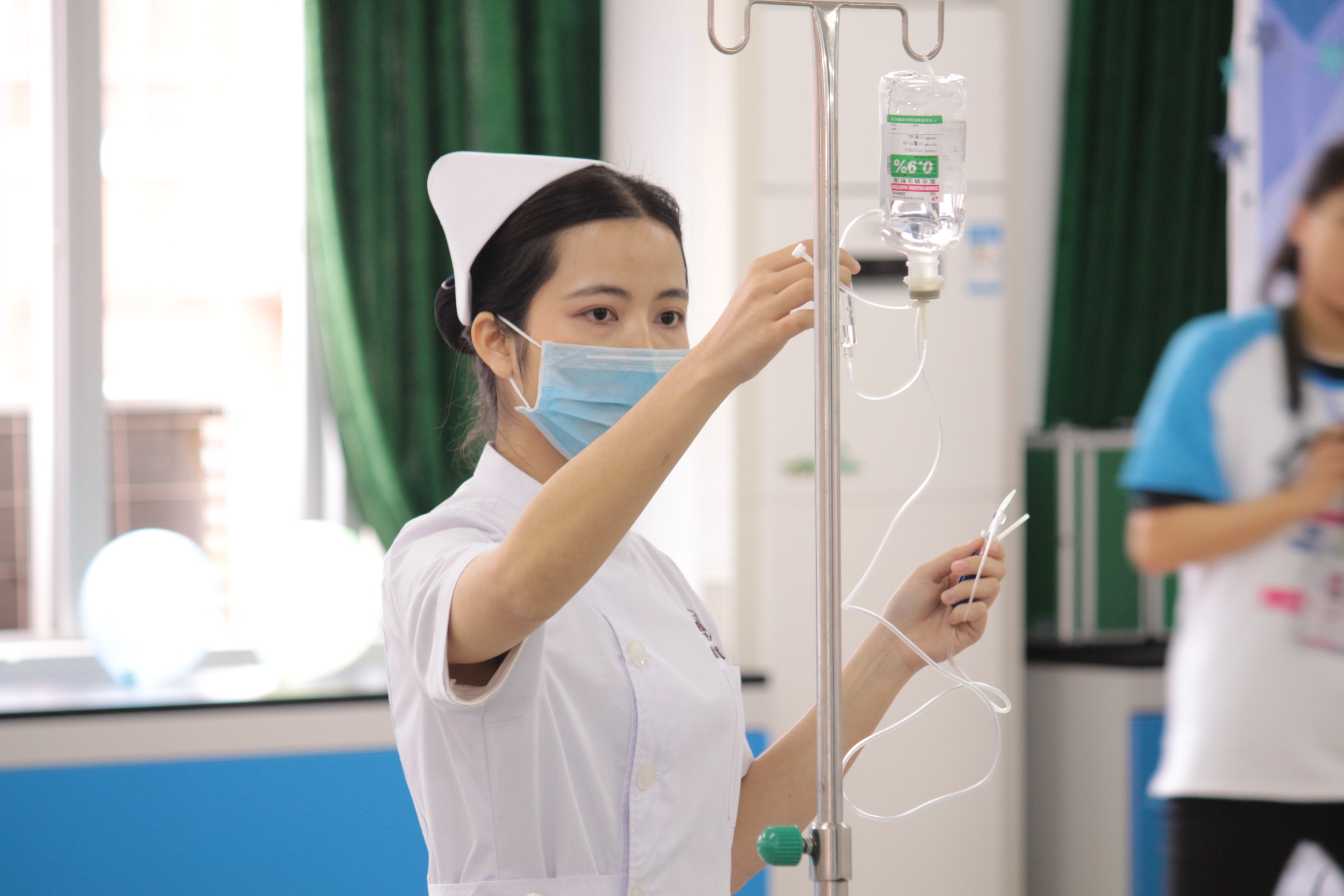 本次活动一共有四个竞赛项目,分别是无菌基本技术、静脉输液、药液抽吸、氧气筒吸氧法。在决赛开始之前,12名在初赛中脱颖而出的选手日夜不停,勤加训练,学习并掌握了更方便快捷规范的操作方法,在赛中力争夺冠。比赛现场十分地紧张,尤其是选手的操作过程中,全场只听见选手的解说声、评委老师的写字声以及观众的呼吸声。在如此紧张的气氛中,每位选手丝毫不受影响,胸有成竹,散发着自信的光芒。每个操作都有条不紊,同时快速而细心,在与时间赛跑的同时保证每一步操作的规范性。台上的选手仔细操作,台下的观众认真观看和学习,全神贯注。