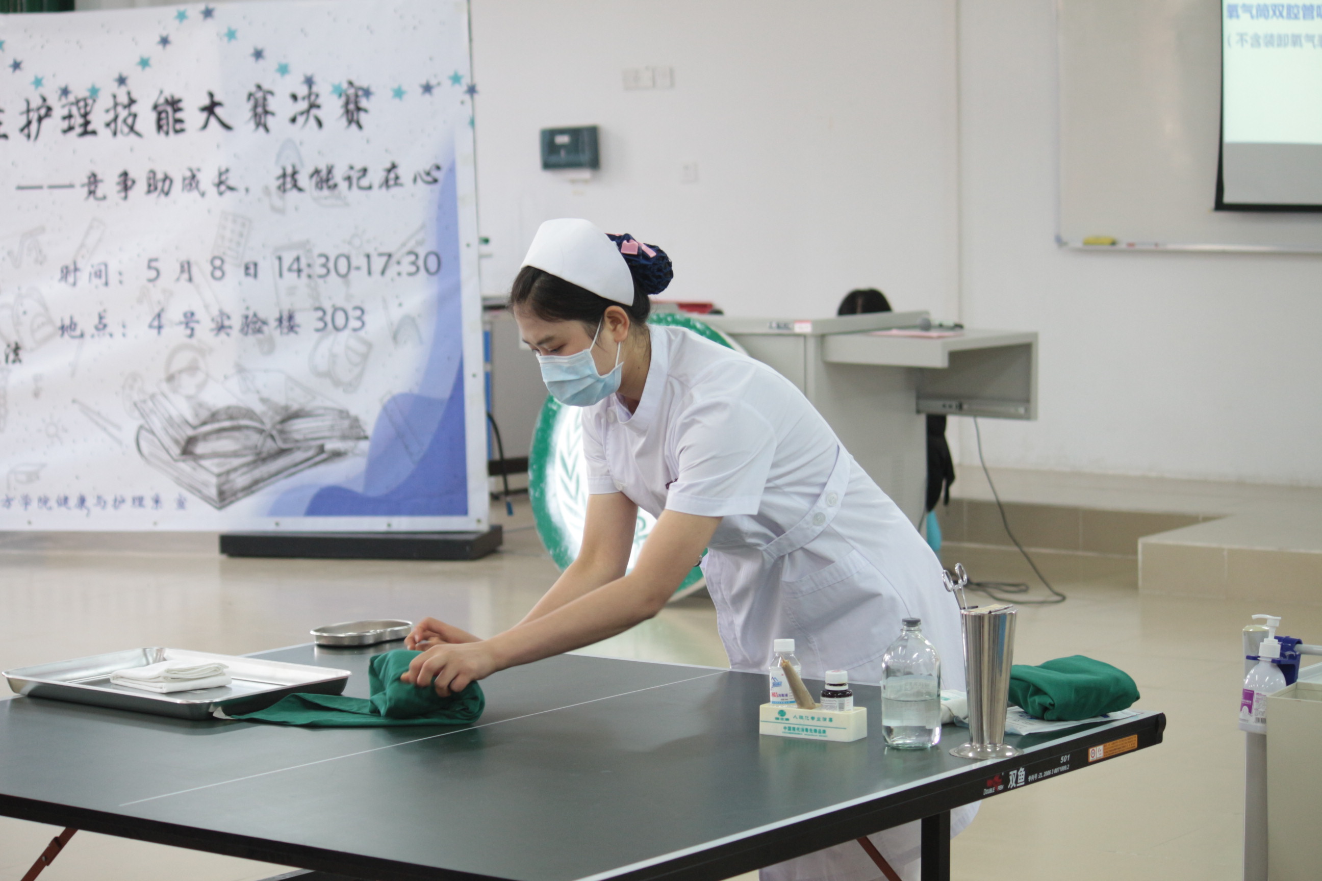 为纪念和弘扬南丁格尔的护理专业精神,提高护理专业学生对护理专业的认同感和理解,熟练掌握基础护理技能,展示护理专业学生风采。经过4月7日的初赛选拔后,健康与护理系于5月8日在四号实验楼护理技能实训室举办了第四届学生护理技能大赛决赛。出席本次比赛的评委有中山大学孙逸仙纪念医院护理部副主任周雪贞老师、中山大学附属第三医院护理部副主任方衡英老师、中山大学附属第一医院护理部柯彩霞老师、健康与护理系副主任陈老师、健康与护理系基础护理学课程负责人赵飞英老师。出席本次比赛的嘉宾有中山大学南方学院常务副校长、党委副书记唐燕老师,教务与科研部副部长刘云东老师以,健康与护理系全体老师和各班级学生代表出席了本次比赛。