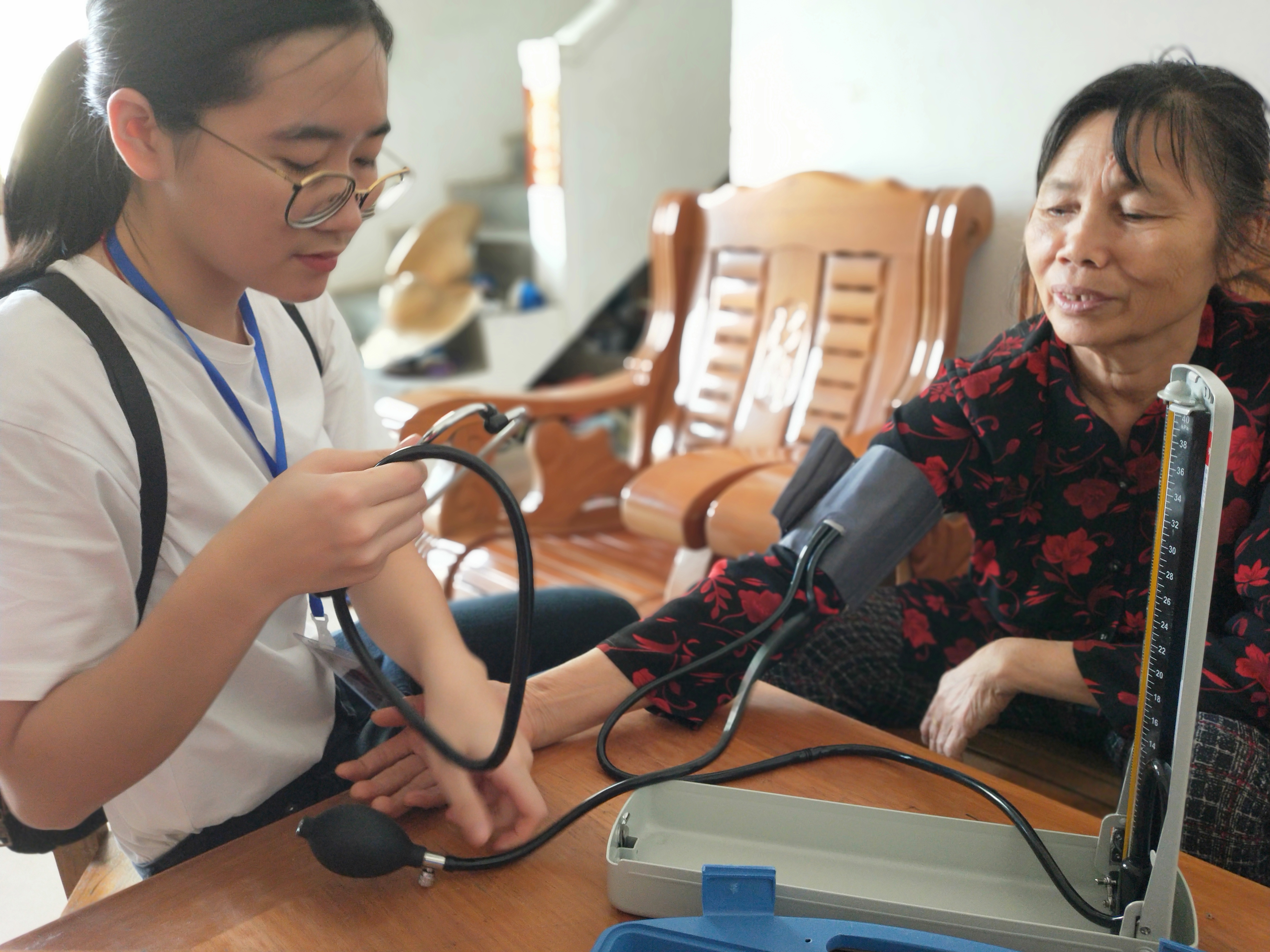 经过对急救知识宣传、血压测量等开展前期培训后,社会实践部与医疗队在当天下午14:00从学校徒步出发前往乌土村。经过50多分钟的步行,队伍抵达目的地。在简单的休整之后,队员们分成两组深入乌土村的大街小巷,为村里的中年人和老人们测量血压。与此同时,队员们也积极对村民们进行了问卷调查并向他们讲解了高血压与糖尿病等常见病的相关知识,耐心地手把手教授村民们如摔伤、烫伤等外伤的一些简单的护理方法。