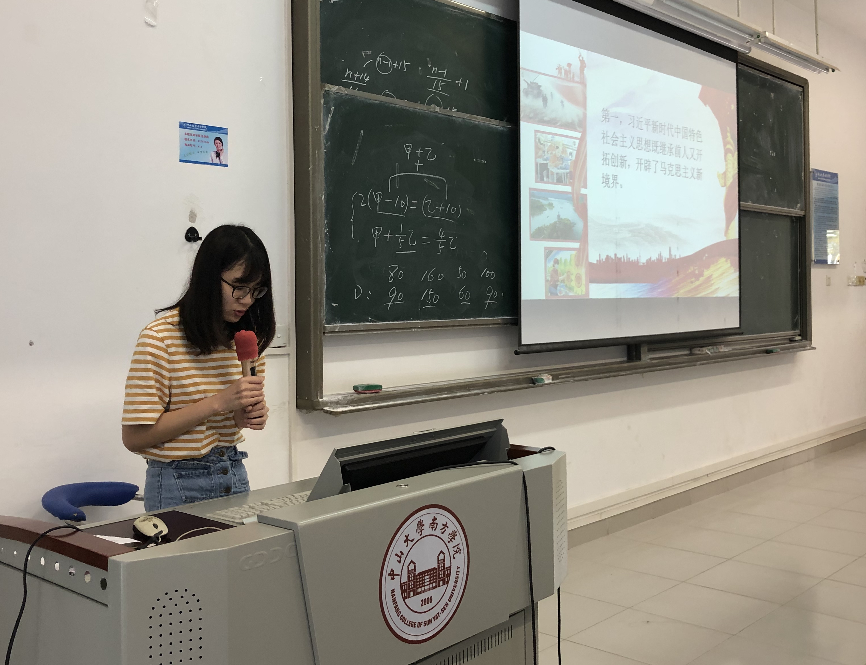 预备党员洪晓芸、何颖琪和李心怡同志分别以PPT展示的形式,与其他同志们共同分享学习“习近平新时代中国特色社会主义思想”。