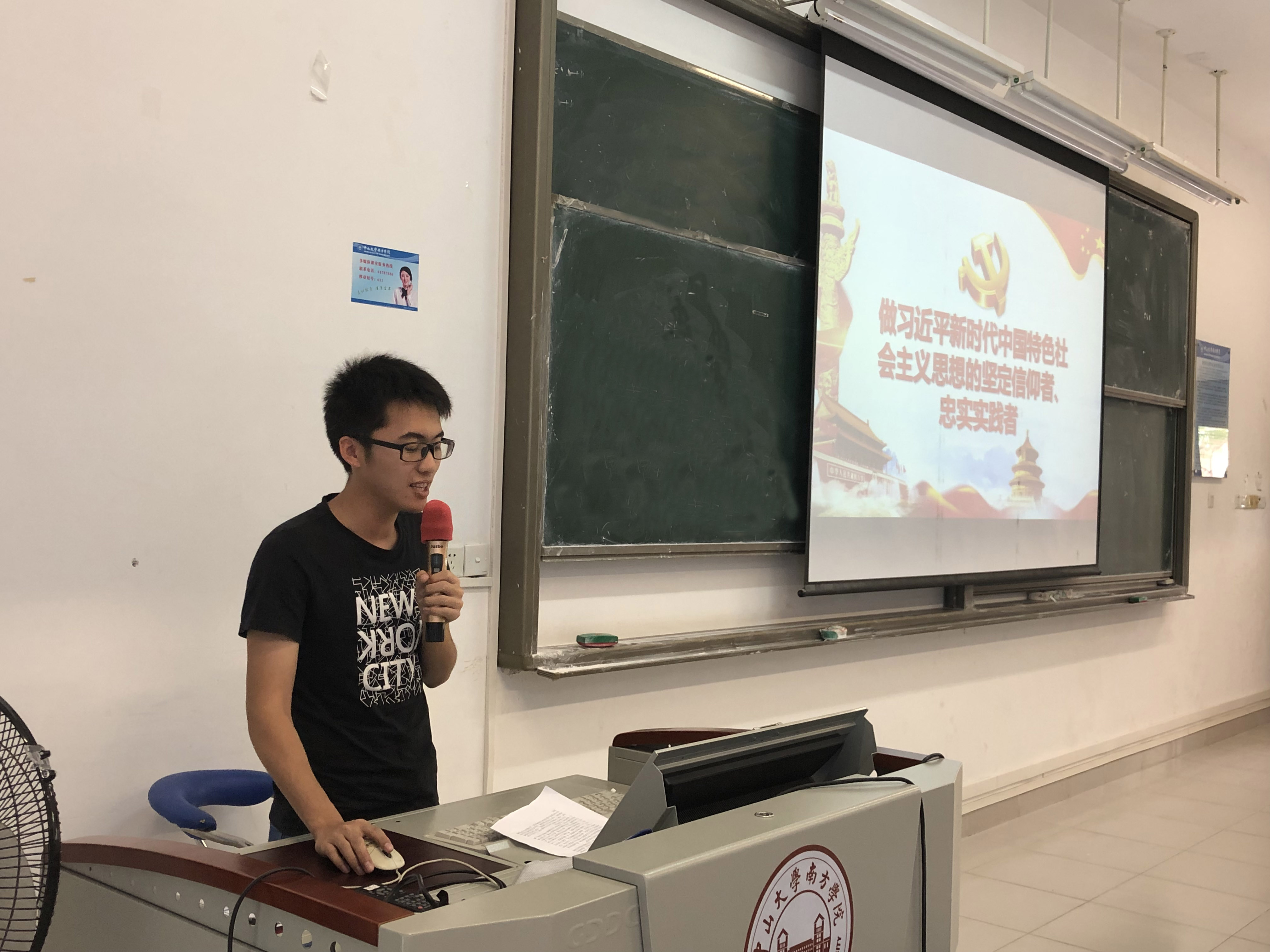 本次会议承接5月23日的专题理论学习,由党支部成员曾洁彤同志主持,继续学习“习近平新时代中国特色社会主义思想”,深入贯彻“习近平新时代中国特色社会主义思想”。在会议中,支部内三个小组的代表同志轮流上台为大家分享学习报告。