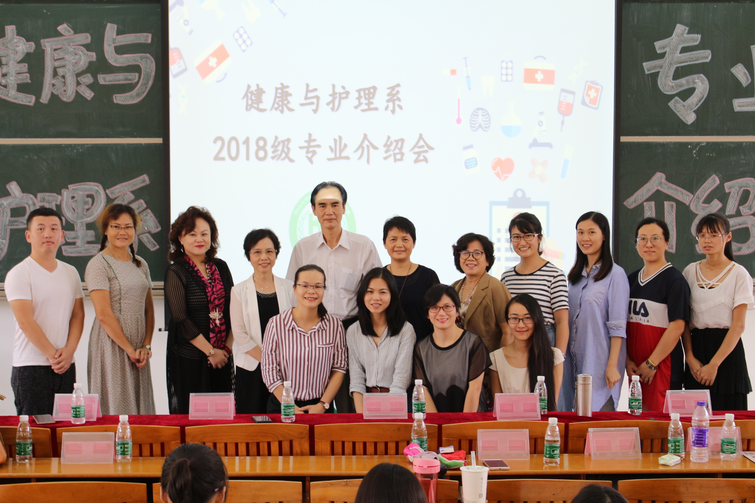 健康与护理系方海云主任护师、副主任陈华丽副主任护师、办公室副主任罗烟桃老师、辅导员林晓兰老师、教学秘书刘嘉韵老师、全体专任教师及2018级全体新生出席参加了本次专业介绍会。