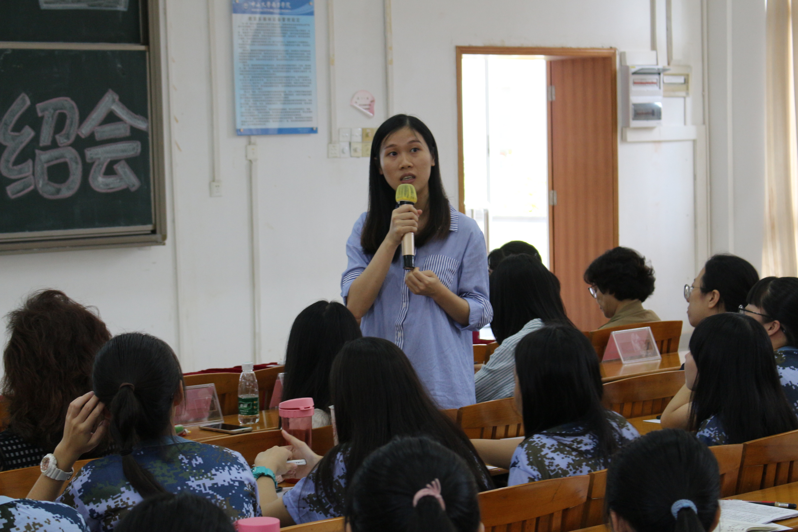 大会伊始,方海云老师首先对新生们加入我系护理队伍表示热烈的欢迎,随后对本专业的师资力量、课程安排、实验室设置、实习基地及学生就业等方面进行了详细的介绍,同时也向2018级新生们展示了一个具有培养优秀护理人才能力的健康与护理系。紧接着,陈华丽老师表达了自己对2018级新生的期望——希望新生们逐步完善专业知识的熟知度;在大学新的起跑线上,不忘初心,砥砺前行。随后,谭坚铃老师用诙谐有趣的言语为新生们介绍了护理学专业各科目的不同学习方法及不同科目间的衔接与应用。