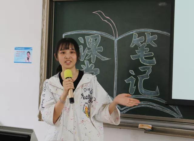 李夏怡等六名同学以PPT演讲的形式,向大家分享了如何做好和整理自己的笔记:庄滢同学向观众展示了自己的图文笔记,并强调图文并茂笔记的益处;张惠娟同学告诉同学们要学会运用英文与特殊符号做笔记,达到快与精的效果;吴敏同学也指出做笔记的速度与精炼的重要性;李夏怡和谭顺子提出听课的重要性;罗艺璇同学告诫同学们要自律。场下同学们用求知若渴的眼神全神贯注地听讲,学习台上同学独特的做笔记方式和学习经验。