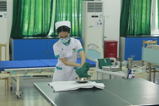 本次比赛的内容包括皮下注射法、鼻导管给氧法、测量血压、口腔护理、隔离技术-穿脱隔离衣、无菌技术-铺无菌盘、铺备用床、无菌技术-戴脱无菌手套等八项操作项目。比赛中,同学们有条不紊的进行着繁多的护理操作,动作娴熟敏捷,操作准确无误,每位同学都以最佳的精神状态展现自己的风采。虽然平时看似简单的操作,却蕴含了许多的细节问题,如给棉被套上被单,在比赛中显得相当的棘手,不仅细节繁多而且操作复杂。但选手们沉着冷静, 在规定的时间内熟练而规范的完成了比赛。