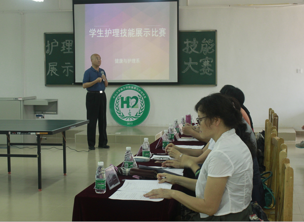 出席本次大赛的嘉宾为中山大学南方学院院长助理赵过渡、院教务与科研部常务副部长刘金成,任课教师黄存嫦老师以及景晨老师。此外,还有幸邀请了中山大学护理学院的严卫青老师、赵飞英老师、中山大学南方学院医务室主任梁海华老师、健康与护理系陈华丽主任、系办公室主任忻丹国老师以及任课教师王政医老师担任本次大赛的评委。