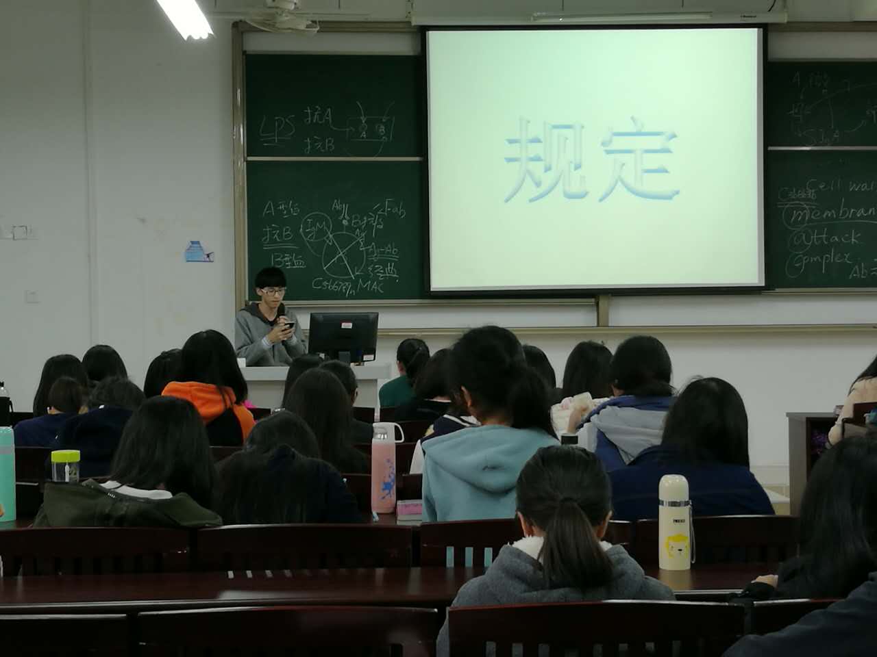 会议开始前,两位班长用PPT的形式展示了《普通高等学校学生管理规定》的内容,并将与同学们学习息息相关的点做了记录,全体同学都认真聆听并做好记录。