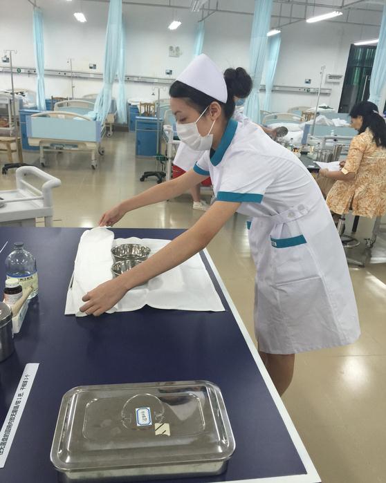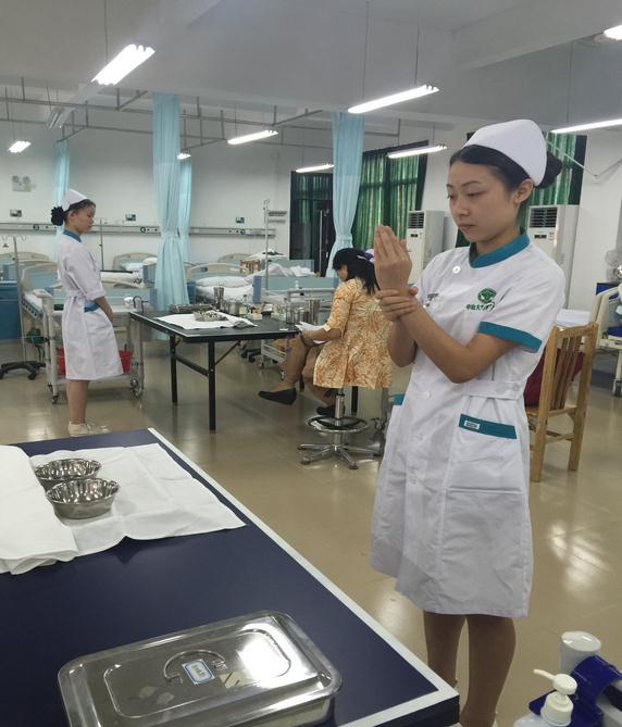 考试当日,全体同学都穿上整齐的护士服,带上洁白的燕尾帽,等待老师们的检阅。尽管同学们经常会到教室进行练习,但是面对考试,仍会透露出一丝丝的紧张与焦虑。候场时,同学们都在讨论与交流,从别人的操作过程中吸取经验,弥补不足。老师们对每位学生的无菌技术操作进行了严格的考核和评分,学生也都表现出了良好的心理素质和娴熟的操作技能。最后,老师们为学生的无菌技术操作进行了点评,望同学们在今后的学习与操作中多加注意,进一步提高。同学们纷纷表示受益匪浅,收获良多。