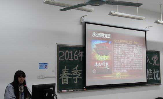 3月12日晚上18:30,我系于7教204举行2016年春季入党推优大会。参加本次大会的有健康与护理系团总支副书记朱海燕师姐、学生会主席廖淑霞同学以及来自14、15级健康与护理系的50名大众评委。