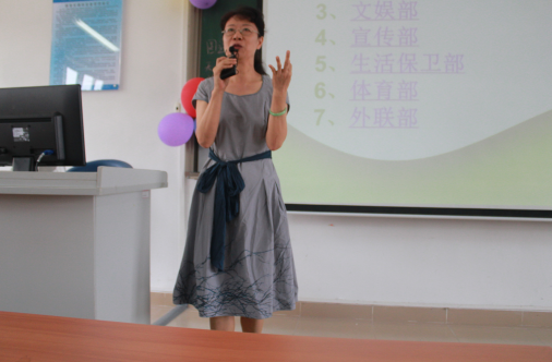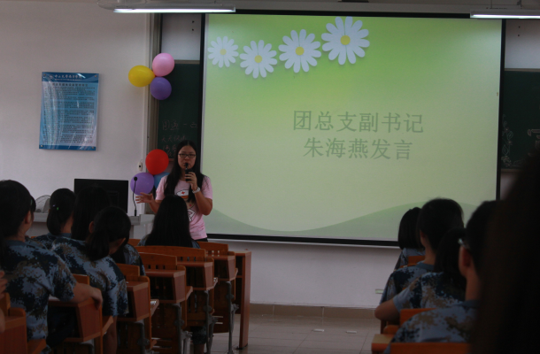 紧接着,团总支副书记朱海燕同学发表了讲话,分享了其从一个干事到现在任团总支副书记的心路历程。其在讲话中指出,加入团委学生会,不仅是个人自我价值的实现,更是得到了一个锻炼自我、提升能力的平台。
