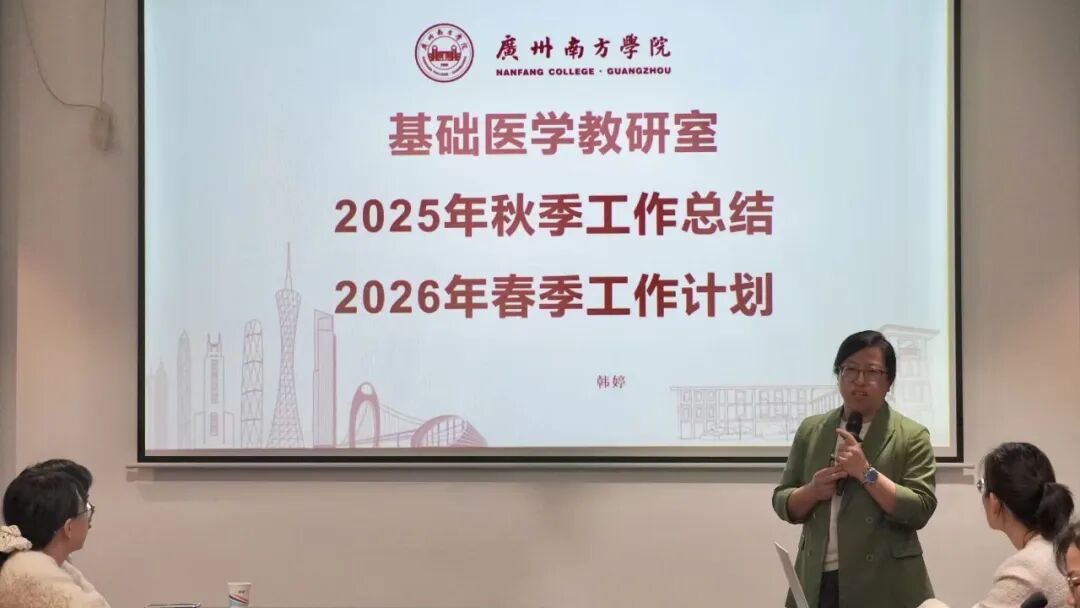 基础医学教研室主任韩婷就课程建设与改革、教科研项目立项及执行、教师获奖情况等工作成果进行了汇报,并阐述了新学期的工作规划。她鼓励教师深耕教学一线,积极参与教学竞赛,主动指导学生赛事,同时坚持以评促建,对标提升,全面推动教学质量与人才培养水平再上新台阶。