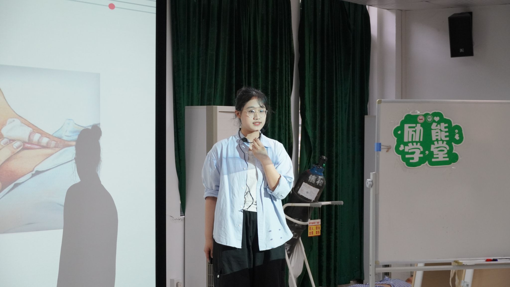 课堂上,佘芊睿同学以真实急救案例切入,结合数据图表与国际最新标准,系统讲解心肺复苏(CPR)的核心原理与AED使用规范。她特别强调:“心脏骤停后的黄金4分钟内实施CPR,患者生存率可提高2-3倍。”从胸外按压的力学原理到操作场景的精准判断,她将专业知识转化为通俗易懂的讲解,让“5-6厘米按压深度”“30:2按压通气比”等关键数据深入人心。