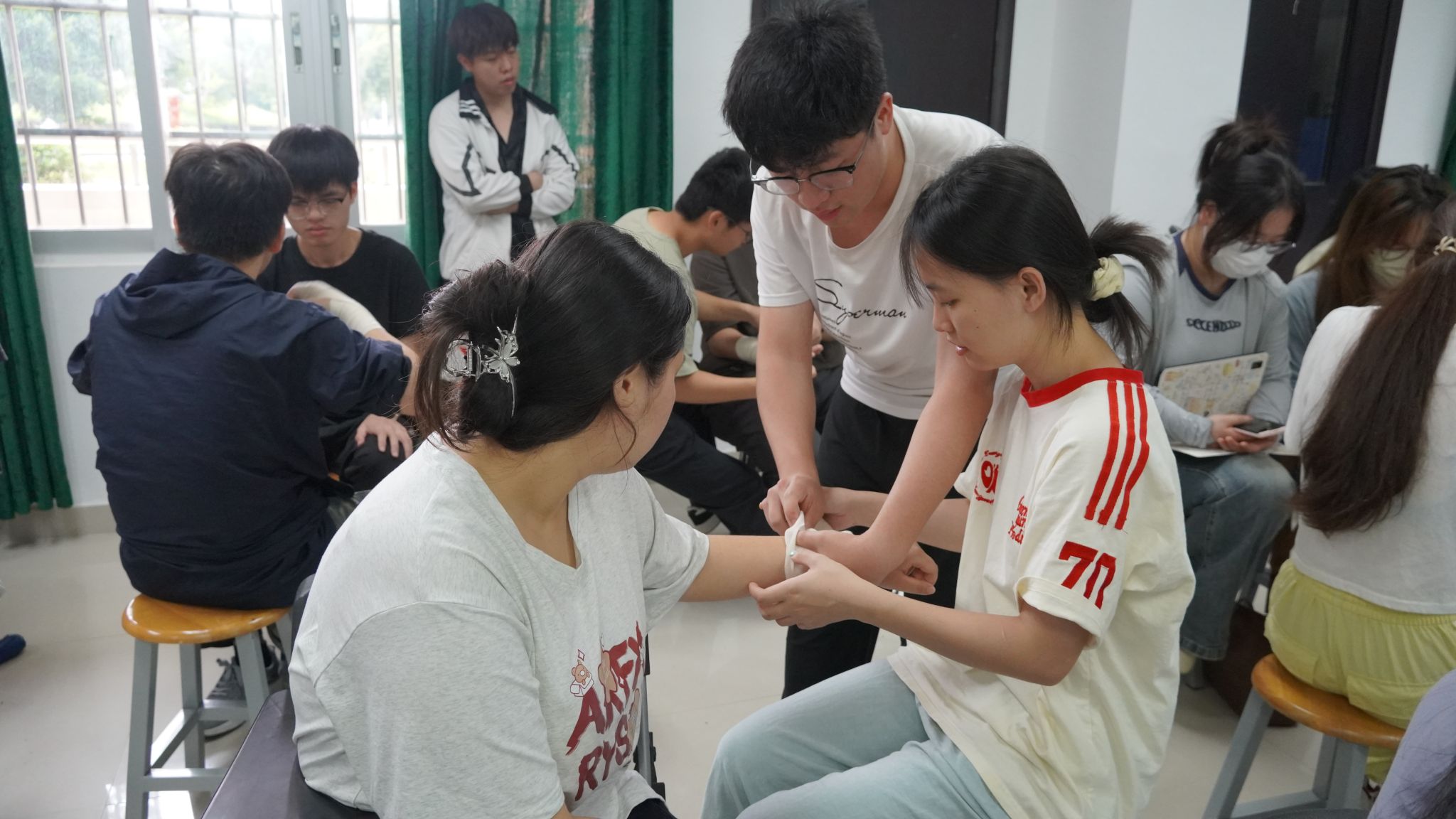 为深入落实立德树人根本任务,深化“三全育人”综合改革,全面加强学风建设长效机制,扎实推进资助育人工作。2025年5月17日,金年会jinnianhuicom于10教101室开展励能学堂第三讲之外伤急救包扎技术,本次课程的小老师为金年会jinnianhuicom的李远明同学。