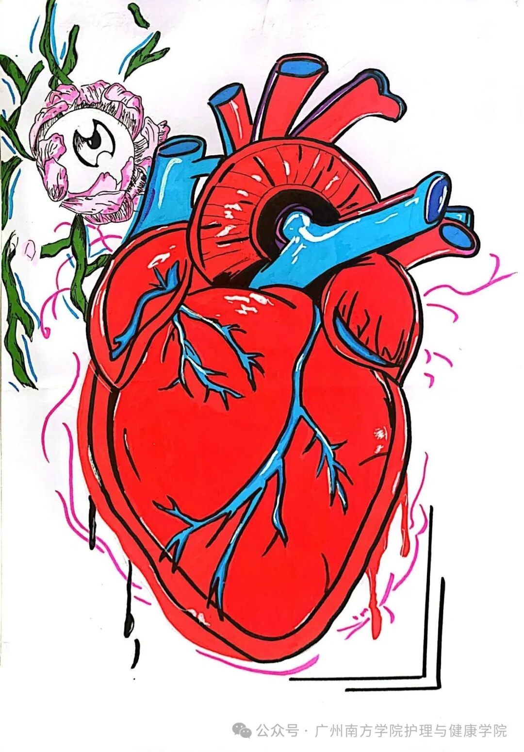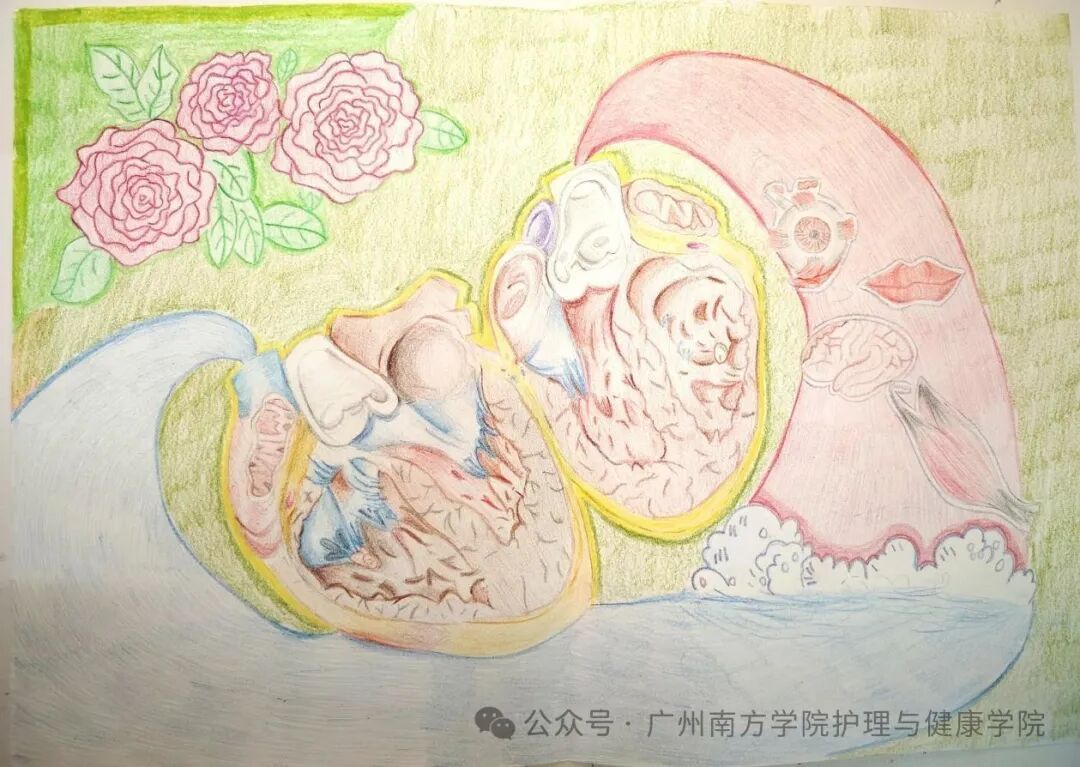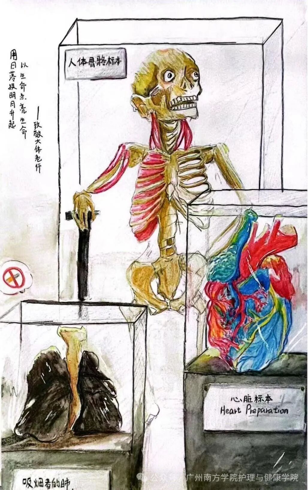 当素描笔遇见解剖图,当创造力碰撞专业知识,护理学子用独特的视角谱写了一曲生命礼赞。每一处精准的肌肉走向,都是对医学的虔诚致敬;每一抹灵动的色彩铺陈,都是对艺术的深情告白。