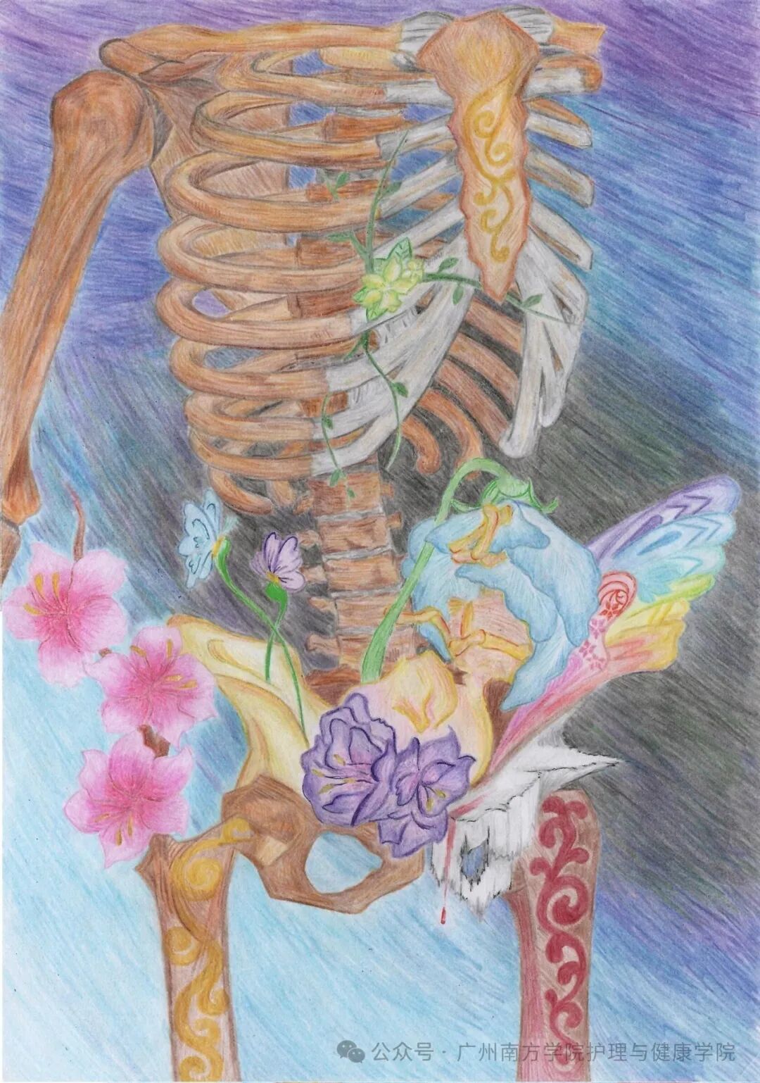 以严谨的线条勾勒生命的轮廓,以求知的姿态探寻人体的奥秘。当传统与创意相遇、专业与艺术相融,护理学子们以灵思为笔、学识为墨,在科学与美学的交汇处绘就了一幅幅医艺双绝的匠心之作。
