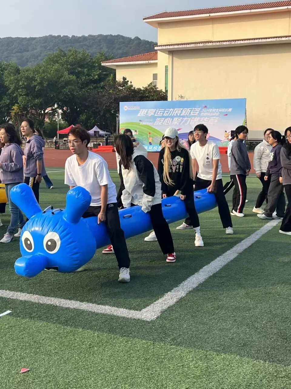 环校长跑结束后,紧张刺激的趣味运动环节精彩开场,无论是“一路向前”的快速接力,“趣味毛毛虫”的步伐一致,还是“枕头大战”的齐心协力,“昂首前行”的相互配合,都展现出金年会师生强大的凝聚力和集体荣誉感。
