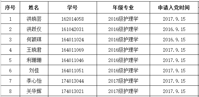 健康与护理系直属党支部关于2019年春季发展对象名单的公示
