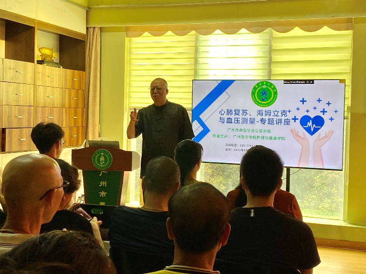在生活中我们都可能会遇到各种紧急的事故,但当人们都掌握着一些急救小知识,便可以遇事不慌。本次活动是为广州市养生协会的学员们讲解心肺复苏、海姆立克急救法和量血压的小知识,为他们 科普相关知识。