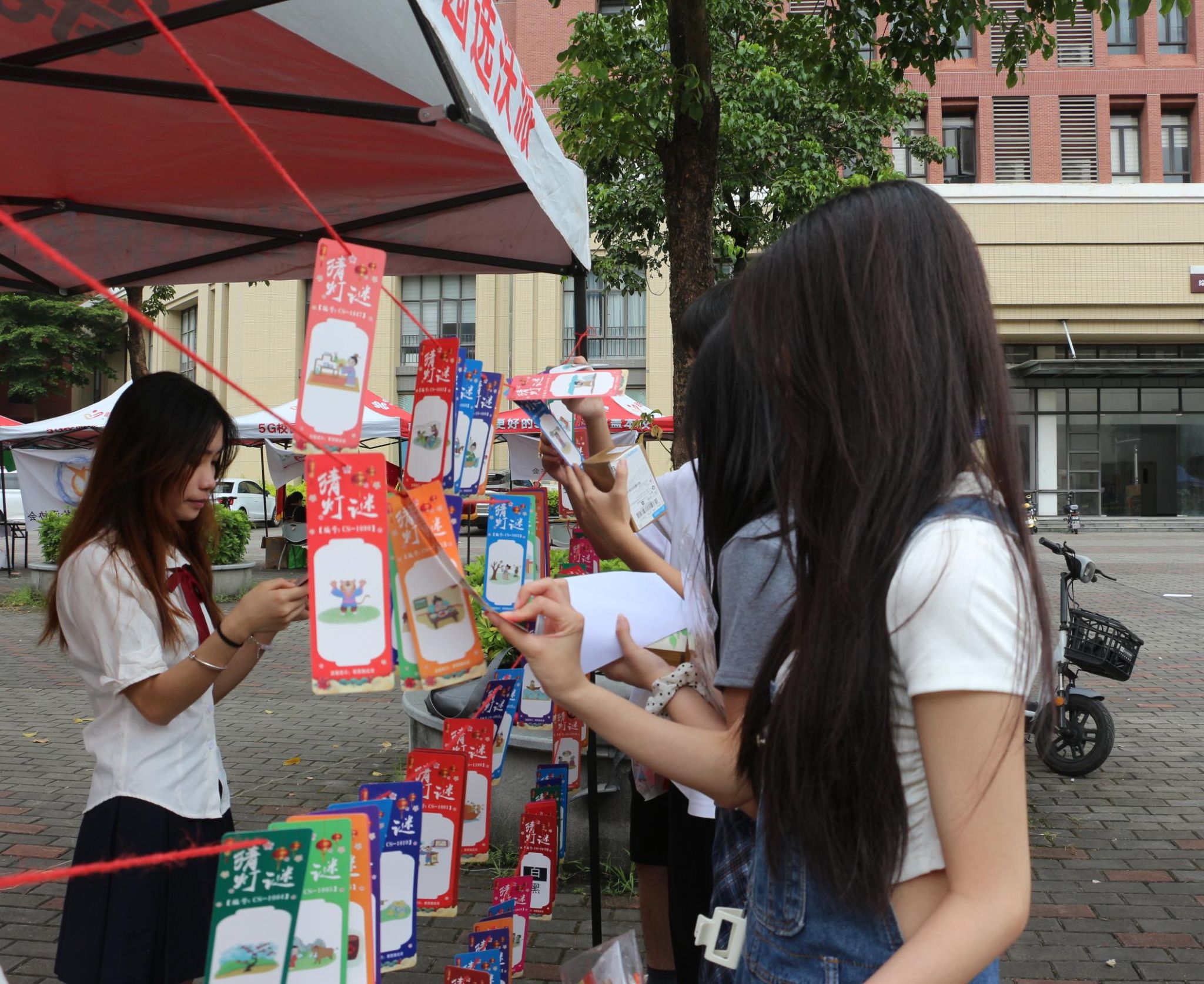中秋灯谜趣无边,佳节共度乐翻天。五彩纷呈的灯谜随风舞动,吸引着过往学子的目光,现场人头涌动,热闹非凡。同学们时而手执谜面纸张,时而与同伴交谈,在思索中感受中华文化的无穷魅力,让每一次的脑洞大开都幻化成为惊喜。