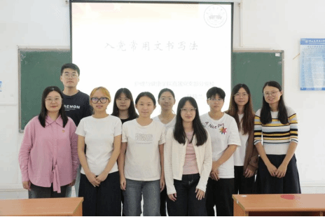 林晓兰老师围绕入党常用文书书写展开详细地讲解,并带领发展对象重温了入党流程。林老师从入党申请书、思想汇报、自传、入党志愿书、转正申请书的书写格式及其注意事项进行介绍,强调了同学们要明确入党动机,要求同学们做到实事求是、不说空话、不说假话,要时刻以党员的标准严格要求自己,明确今后努力方向,以实际行动创造条件,争取早日加入党组织。