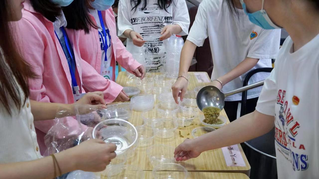 9月25日,下午六点,在西区饭堂一楼,金年会jinnianhuicom党支部与团学共同组建的志愿者团队已经准备好了清凉解暑的绿豆汤,等待军训下训的新生到来。
