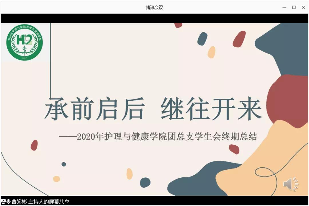 伴随着婉转的歌声,大会拉开序幕。林晓兰老师为本次会议致辞。林老师表示,受新冠肺炎疫情的影响,金年会本学期大多数活动以线上的方式举行,这对护理学子而言是全新的挑战与尝试。护理学子对待每一次活动的全力以赴、尽善尽美的工作态度赢得了林老师的肯定。林老师认为,在本次汇报中,各组织不仅要汇报这一学年的工作情况,更要对自我做出深刻的反省,总结经验,以便提升自我能力,提高工作效率。本次汇报是一个终点,同时也是一个起点,林老师希望在往后的日子里,团学的成员们能更好的服务同学,开展更高质量的活动。最后,林老师预祝本次大会顺利举行。