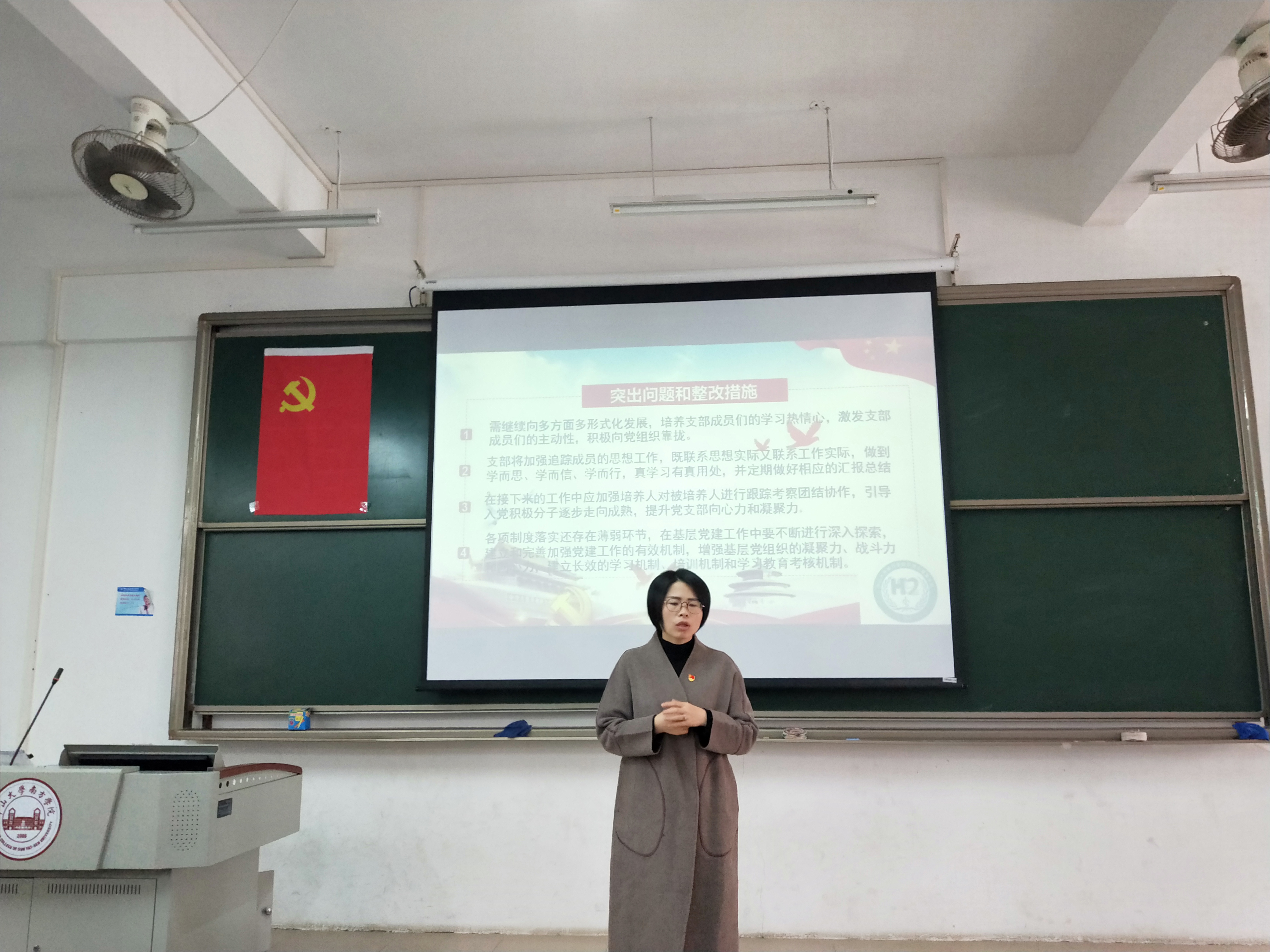 首先,由院直属党支部教工党支部书记韩婷同志进行年度述职。韩婷同志从支部制度建设、理论学习为先导促进思想建设、“三会一课”制度建设落实情况、党员队伍建设四个方面进行报告。
