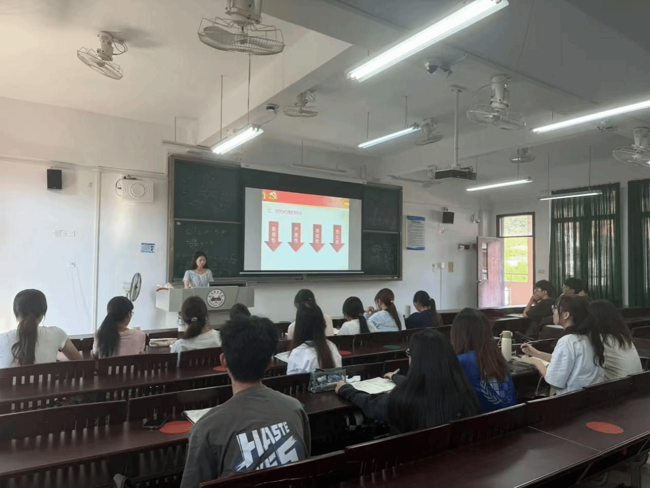 课程伊始,何送妹老师带领同学们深入学习党的组织原则、纪律和作风并强调其对执政党的重要意义,鼓励同学们自觉遵守党的纪律、维护党的优良作风,争取成为一名合格的学生党员。
