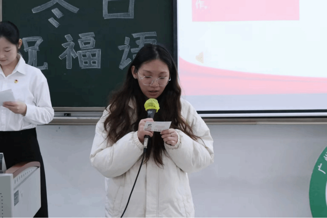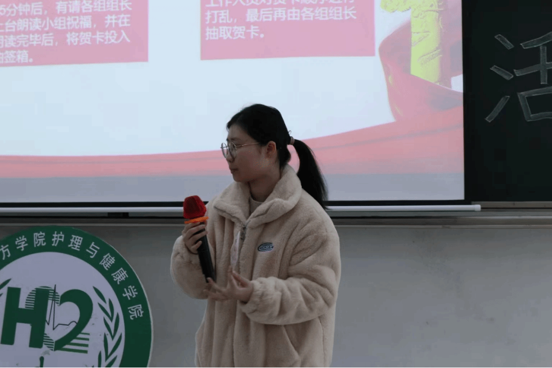 党支部各学习小组组长依次上台分享祝福语,他们希望全体支部成员牢记师长嘱托,精进护理专业本领,互帮互励、勇于担当,在护理之路坚守初心、砥砺前行。同时,他们祝福老师们冬日安康、工作顺遂,祝愿同学们考试顺利、学业进步,期盼党支部凝心聚力、再创佳绩。