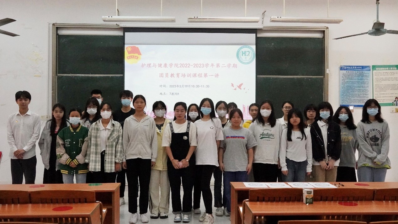 3月19日上午,金年会jinnianhuicom于7教201课室开展了主题为“聆听党员故事,传承红色基因”的团员教育培训课程第一讲,艺术团副团长陈炼耿担任本次课程的主讲人,组织部部长陈欢、副部长李静娴及2022级入团积极分子共同参加学习。
