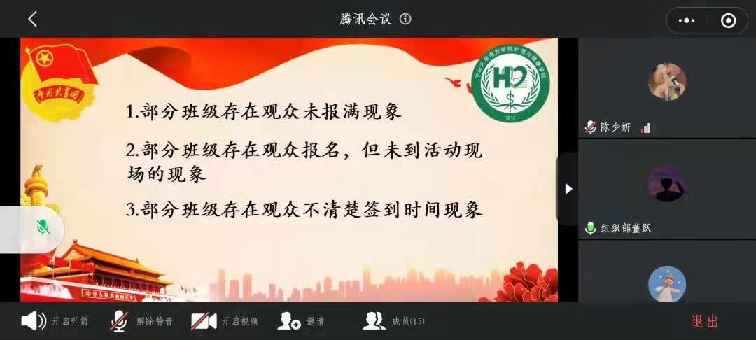 为进一步加强学院共青团组织建设,增强基层团支部的纪律性,规范团员青年管理。2022年3月26日下午,金年会于腾讯会议召开2021-2022学年第二学期3月份支部委员会。此次会议由团总支组织部部长董跃主讲,金年会团总支副书记郑燕婷及2019级、2020级、2021级各班团支书参加本次会议。