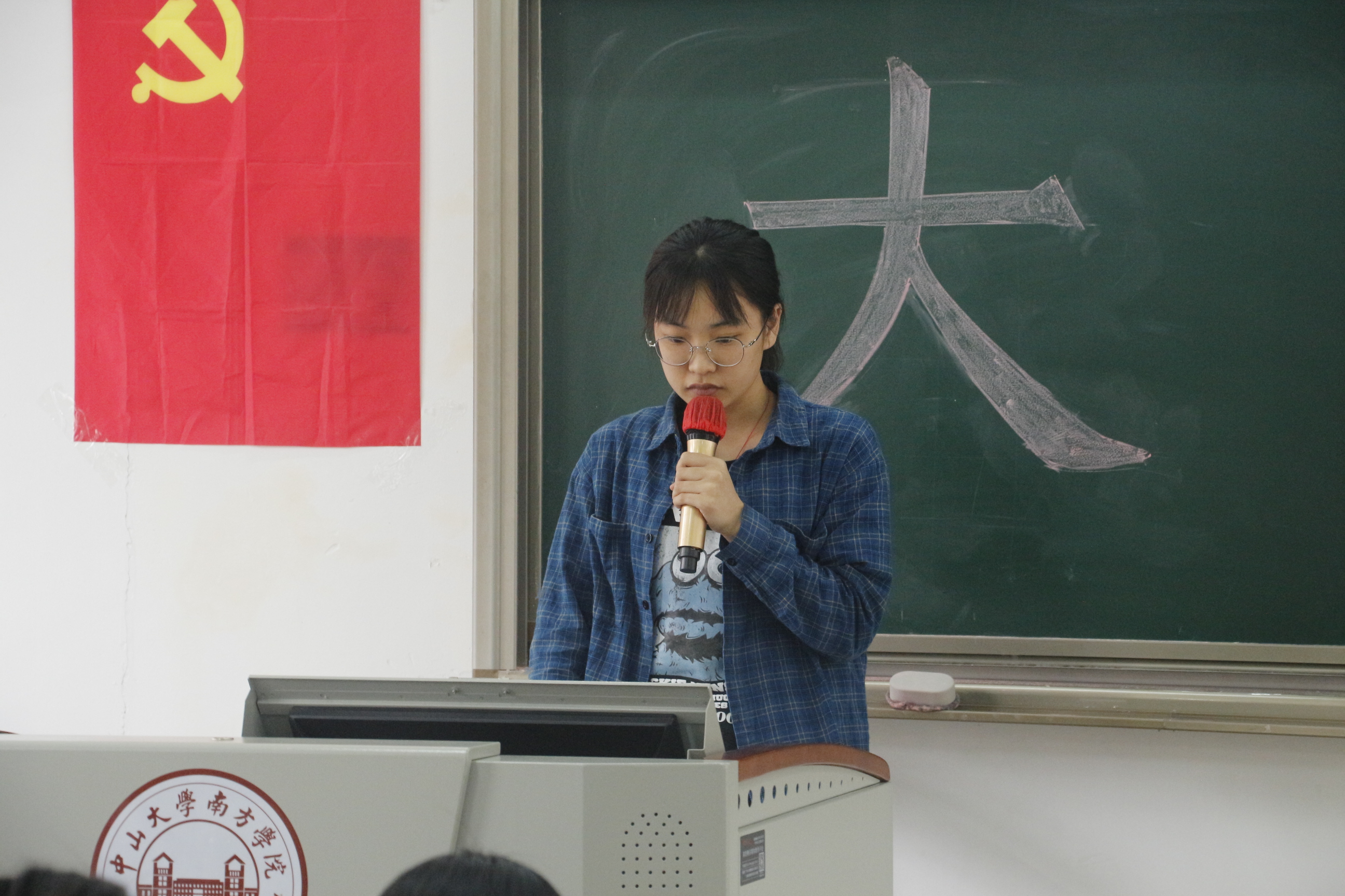 随后,潘梓琪同志带领同学们学习习近平总书记的金句内容,她号召同学们担当起大学生的责任,努力学好专业知识,打实技能基础,为祖国的发展尽自己的力量。潘梓琪同志鼓励同学们及时开展学习研讨,不断创新学习方法,学深悟透习近平总书记重要讲话精神。