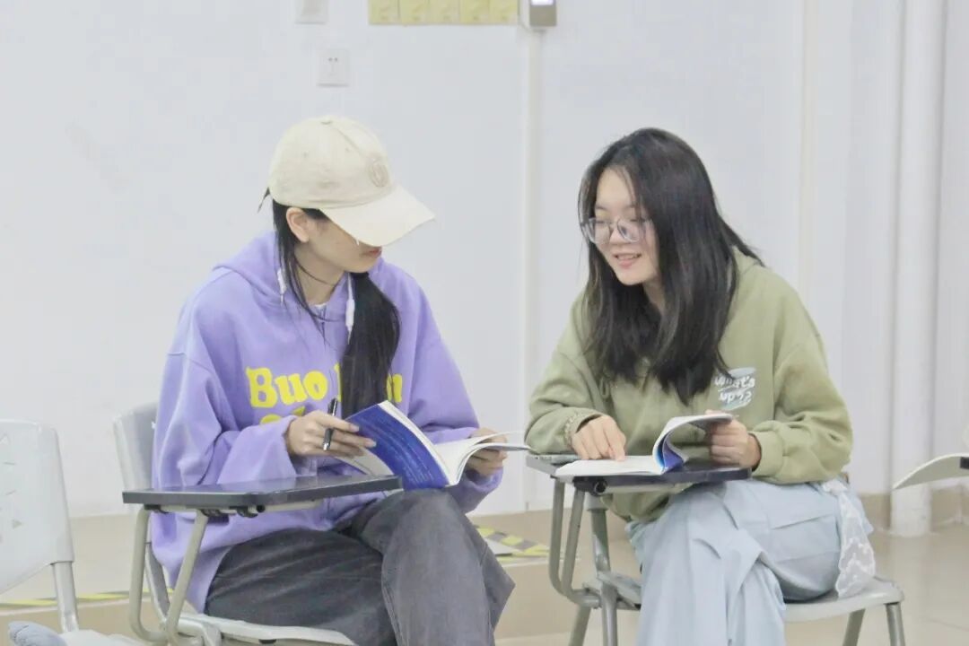 阅读环节结束后,两个阅读小组展开热烈交流。《被讨厌的勇气》阅读小组结合自身因期末考试而十分焦虑的经历,讨论了人们如今在日常生活中纠结内耗的问题,强调了专注当下、积极面对挑战的重要性,倡导人们积极地走出舒适圈,寻求自我的进一步发展;《非暴力沟通》阅读小组则立足于职业与现实,深入探讨人与人之间的沟通方式,强调用先倾听自己,再倾听他人,用心捕获他人的感受及需求。