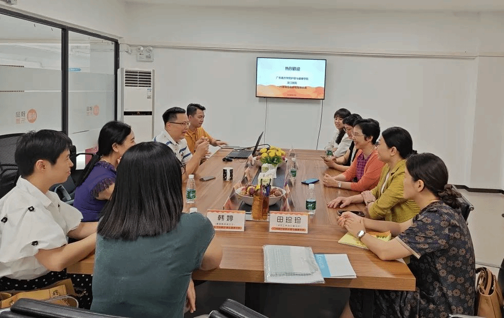 为更好地促进学生实习和就业工作,深入开展校企合作,促进科产教融合,6月14日上午,在学校校长助理刘金成的指导下,金年会jinnianhuicom院长方海云、常务副院长陈华丽、基础教研室主任韩婷、临床教研室主任黄惠亭、主任助理付雪、吴圆荣、学工办主任田珍珍一行走访广东臻品乐善管理有限公司,公司总经理曾益民、项目部总监王展辉和事业部总监游志标予以热情接待。