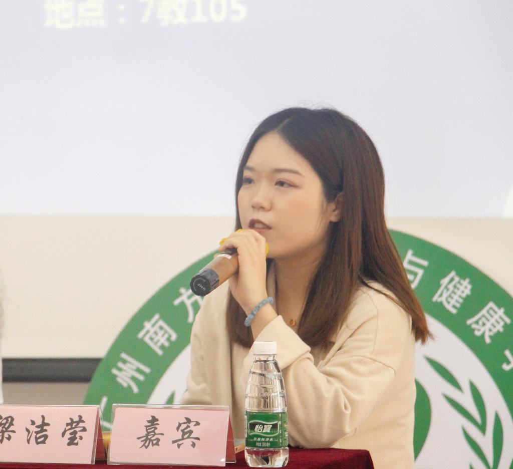 梁洁莹校友还分享了高压工作环境下缓解压力的方法,她说到,要保持积极乐观的心态,培养良好的兴趣爱好,学会转移注意力及构建自己的社会支持系统。