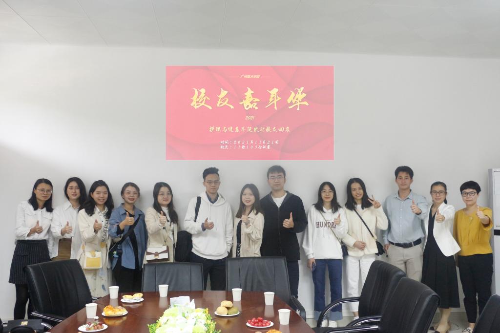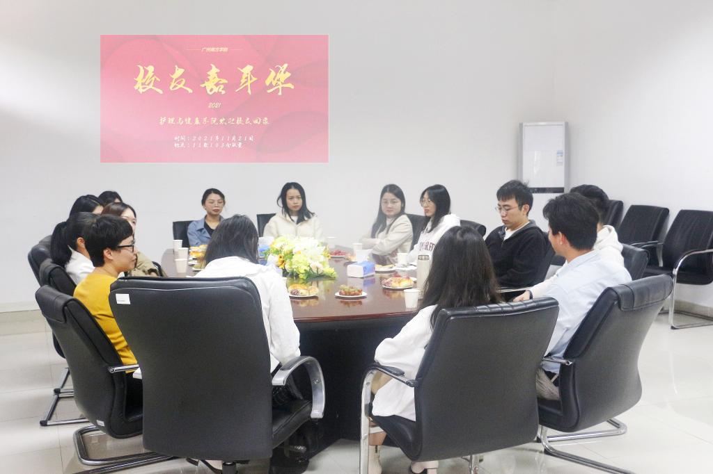 为加强校友与学院的联系,增进师生情谊,2021年11月21日上午9:00,金年会jinnianhuicom于11教103举办校友座谈会。金年会jinnianhuicom院长助理陈秋铃,学生工作办公室主任田珍珍,团总支书记林晓兰以及2013级校友梁流百,2015级校友梁洁莹、范雅、李文慧、王婉婷、梁明华、王富鹏、潘淇、潘加雨、王理婷参加了本次座谈会。