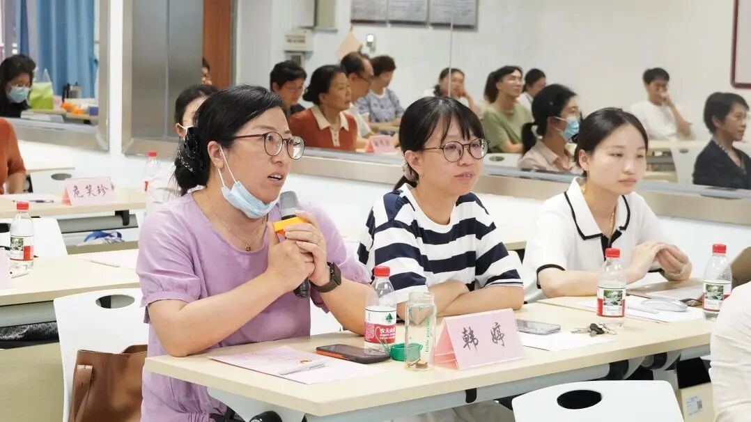 交流互动环节,韩婷老师向周付安教授请教比赛中育人成效呈现的经验。周付安教授指出,要注重平时课堂系统收集,形成阶段性证据,并建议基础学科教学要进行跨学科的结合与创新。